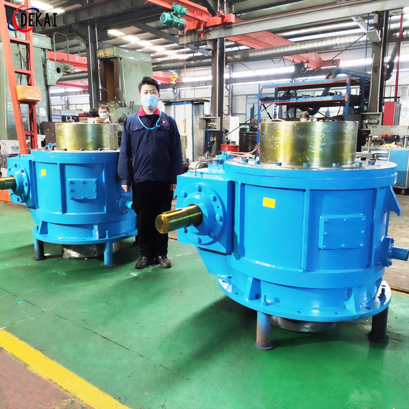 轧机压下二次包络减速机,内部蜗轮蜗杆采用平面二次包络技术,一种新型的传动装置,其承载能力大,传动效率高,结构紧凑,合理,使用寿命长,外形精美。特别适用于大型钢厂的各种连铸机械。